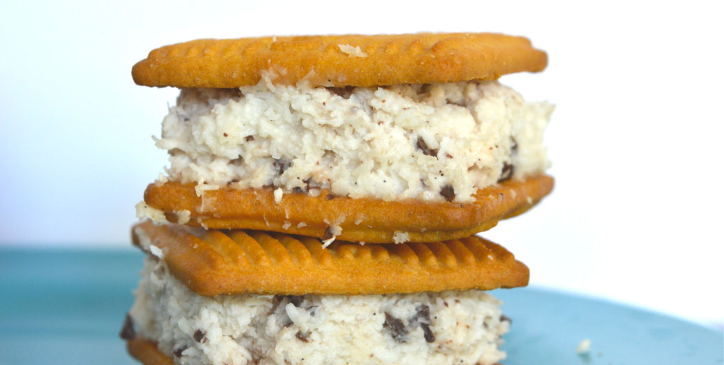 Biscotto gelato vaniglia, cocco e cioccolato Il biscotto gelato vaniglia, cocco e cioccolato è uno snack perfetto da mangiare a merenda. Torna alla pagina Vivi Verde Senza succheri aggiunti e senza uova, non occorre la gelatiera per prepararlo. Scegliendo ingredienti di qualità come quelli vivi verde Coop, biologici e gustosi, si avrà la certezza di realizzare una merenda sana e nutriente apprezzata da tutta la famiglia. Se avete quindi dei bimbi piccoli o semplicemente amate i gelati biscotto home made, questa facile e deliziosa ricetta è proprio adatta a voi. Ingredienti per 16 biscotti gelato vaniglia, cocco e cioccolato: 32 biscotti novellini al latte e miele vivi verde Coop 50 gr di cioccolato fondente extra vivi verde Coop 300 gr di yogurt vaniglia vivi verde Coop 50 gr di cocco disidrato in scaglie Tempo di congelamento: 3 h circa Difficoltà: bassa Procedimento per il biscotto gelato vaniglia, cocco e cioccolato: Mescolare in una terrina lo yogurt con il cocco Tagliare finemente il cioccolato ed aggiungerlo al composto di yogurt e cocco Farcire con questo un biscotto, e adagiare sulla farcia un altro biscotto come a formare un panino Continuare in questo modo fino a terminare tutti gli ingredienti, quindi riporre in freezer ed attendere il congelamento Una volta pronti potranno essere serviti subito. A cura di GreenMe Torna alla pagina Vivi Verde I prodotti della Linea Vivi Verde Salviette struccanti delicate 20 pz Vivi Verde Prugne biologico 330 g 330,0 gr Vivi Verde Carta ufficio per stampanti - fotocopiatrici - fax 500 fogli Vivi Verde Infuso di karkadè biologico 20 filtri 37 g 37,0 gr Vivi Verde Crocchette vegetali a base di spinaci e tofu biologiche 2 x 95 g 190,0 gr Vivi Verde Tutti i prodotti della linea Vivi Verde