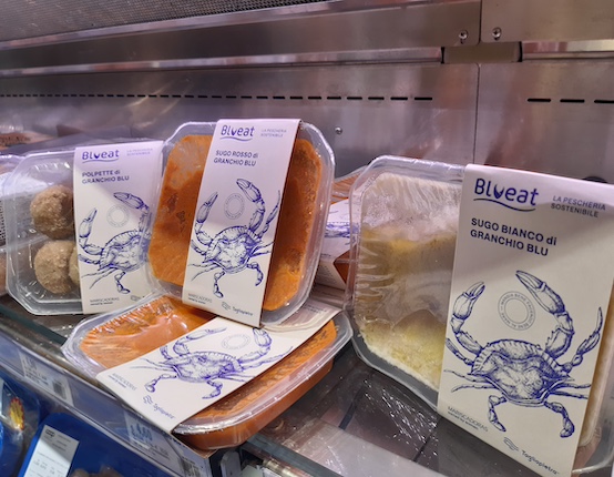 Il frutto di questo lavoro è approdato lo scorso aprile nei punti vendita di Coop Alleanza 3.0, in diverse regioni d’Italia, dal Friuli-Venezia Giulia alla Basilicata. In circa 300 negozi sono infatti in vendita i nuovi prodotti gastronomici Blueat pronti da cuocere o da mangiare: sugo a base di granchio blu, nella versione al pomodoro o bianca, crema da spalmare e polpette. Prodotti dove facilità d’uso e sapore si uniscono a proprietà nutritive preziose, proprie del crostaceo, come grassi essenziali, selenio, vitamine del gruppo B, omega, fosforo e proteine.