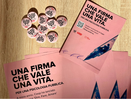 Come spiega dal palco la presidente di Coop Italia Maura Latini: «I nostri soci si sono messi in gioco, hanno partecipato per contribuire a diffondere la consapevolezza di quanto sia importante creare una rete di psicologia al servizio di tutti. Lo hanno fatto perché siamo convinti della necessità di questo strumento, e credo che tutti noi, che a vario titolo abbiamo partecipato a questa campagna, dobbiamo fare il possibile perché questo grande movimento di persone che è nato, e di cui Coop fa parte, faccia sentire la propria voce alla politica».