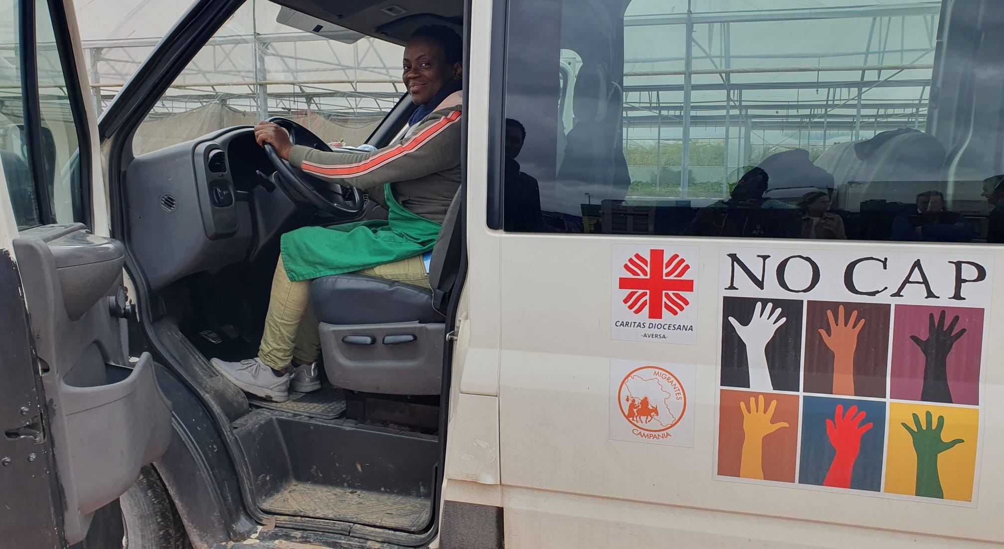 La sveglia di Tina Agbonyinma suona ogni giorno prima delle 6, il tempo di un caffè, di dare un bacio ai suoi figli, ed è già sul furgone per andare a caricare i colleghi. Destinazione: le campagne di Frignano, nel casertano, a pochi chilometri da casa. È lì che si trova l’azienda di agricoltura biologica per cui lavora, ed è lei a guidare il van che li porta tutti al lavoro, dove imbusterà frutta e ortaggi per la vendita.